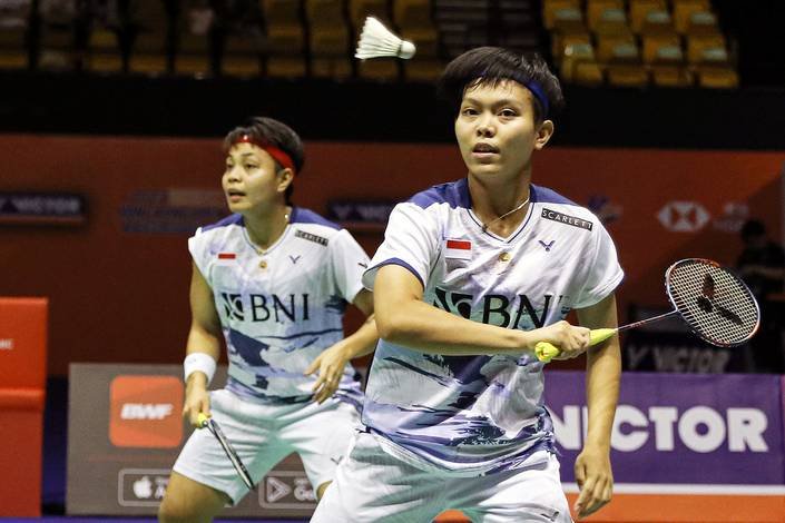Pasangan pebulu tangkis ganda putri Indonesia, Apriyani Rahayu-Siti Fadia Silva Ramadhanti menembus final turnamen bulu tangkis BWF Super 300 "Hylo Open" di Saarbrucken, Jerman, Ahad (5/11/2023). FOTO: djarumbadminton.com/