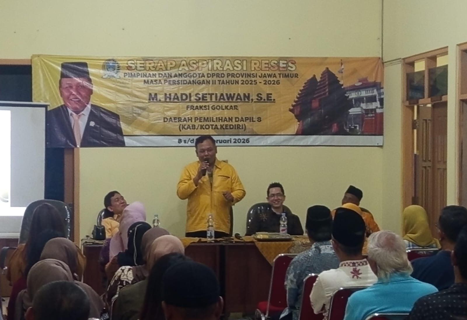 KEDIRI, SUDUTPANDANG.ID – Anggota DPRD Provinsi Jawa Timur dari Fraksi Partai Golkar Daerah Pemilihan (Dapil) 8 Kabupaten/Kota Kediri, M. Hadi Setiawan, S.E., melaksanakan kegiatan Serap Aspirasi Reses Masa Persidangan II Tahun 2025–2026 di Kantor DPD Partai Golkar Kota Kediri, Rabu (11/2/2026) malam.