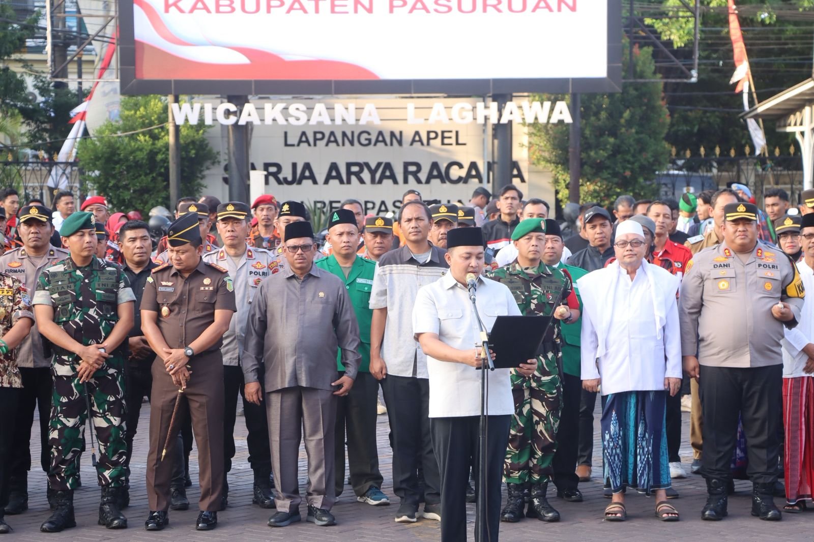 “Kami dari Polres Pasuruan bersama Forkopimda, tokoh agama, ormas, dan seluruh elemen masyarakat berkomitmen menjaga Pasuruan agar tetap aman, tenteram, dan kondusif,” tandasnya.