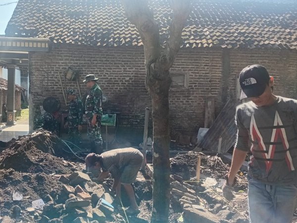 Satgas TMMD Ke-127 Bangun Pondasi Rumah Ibu Haninah (Foto: Kodim0819/Pasuruan)