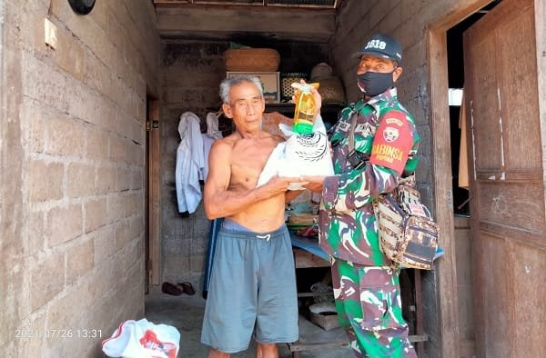 TABANAN, SUDUTPANDANG.ID – Personel jajaran Kodim 1619/Tabanan menyalurkan bantuan dari pemerintah untuk masyarakat yang terdampak Pemberlakuan Pembatasan Kegiatan Masyarakat (PPKM) Darurat.
