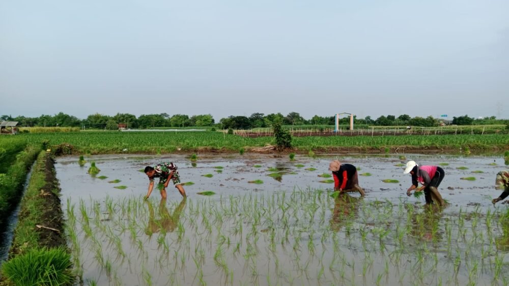 PROBOLINGGO-JATIM|SUDUTPANDANG.ID – Dalam rangka mendukung program ketahanan pangan nasional, Babinsa jajaran Kodim 0820/Probolinggo terus aktif melaksanakan pendampingan kepada para petani di wilayah binaannya. Seperti yang dilakukan Babinsa Koramil Tegalsiwalan mendampingi petani tanam padi di Desa Paras, Kecamatan Tegalsiwalan, Kabupaten Probolinggo, Jawa Timur.