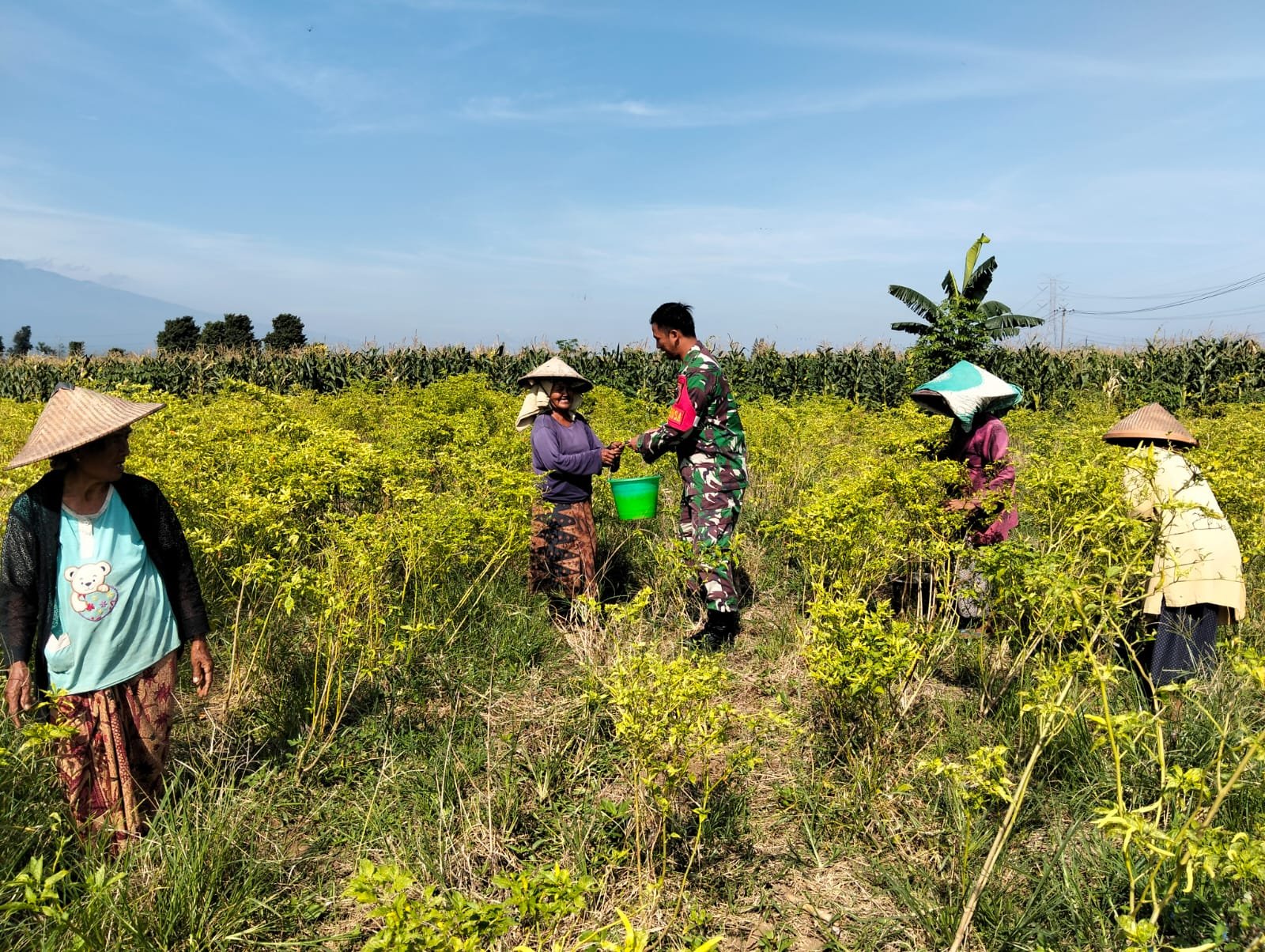 Anggota Koramil Wonomerto saat membantu panen cabai milik salah satu warga binaan (Foto Istimewa)