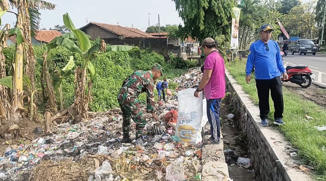 Babinsa Serka Syaiful Darmawan turun langsung ke wilayah binaannya untuk menggelar kegiatan bersih-bersih bersama masyarakat (Foto Istimewa)