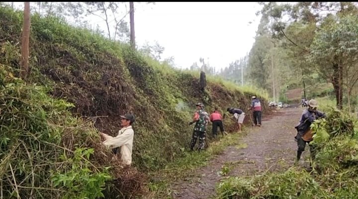 PROBOLINGGO, SUDUTPANDANG.ID –Komitmen TNI dalam mendukung kesejahteraan masyarakat kembali diwujudkan oleh Babinsa Koramil 0820/09 Lumbang, Koptu Dadang Wibi, yang menginisiasi kerja bakti perbaikan akses jalan dan jembatan Sendang Lawe di Desa Sapih, Kecamatan Lumbang, Kabupaten Probolinggo, Senin (26/5/2025).