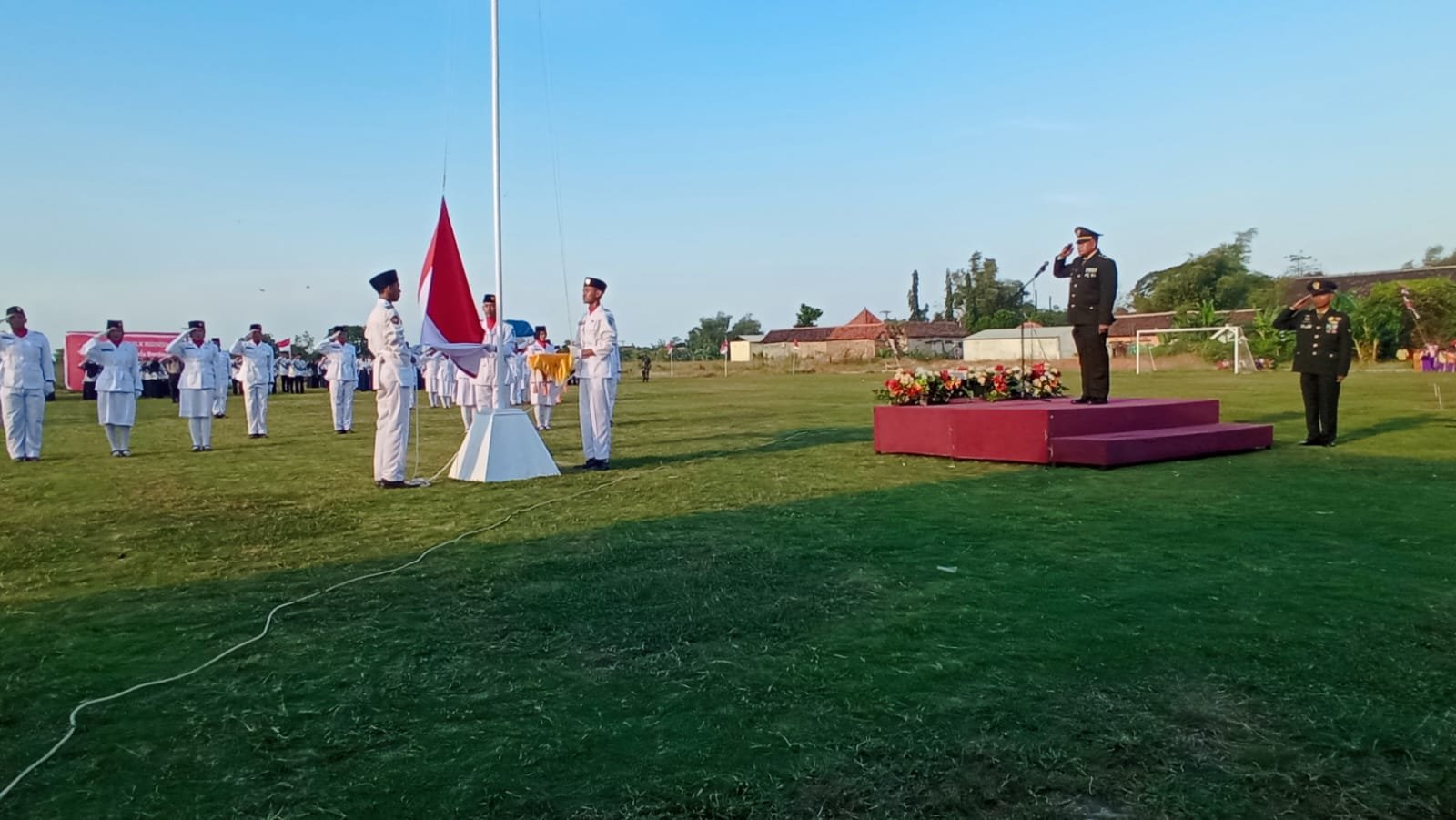 Danramil Pohjentrek Kapten Inf Edy Suryanto bertindak sebagai Inspektur Upacara, sebagai Komandan Upacara Bripka Nur Ega Prihatin SH. dari Polsek Pohjentrek yang dimulai tepat Pukul 16.00 Wib juga menghadirkan Camat Pohjentrek Achmad Hadi Choirul Anam S.Sos M.M., Kepala Desa Sungi wetan Holil, Ketua AKD Kecamatan Pohjentrek Muslih, Tokoh masyarakat, Tokoh Agama, serta tokoh Pemuda Desa Sungi wetan.