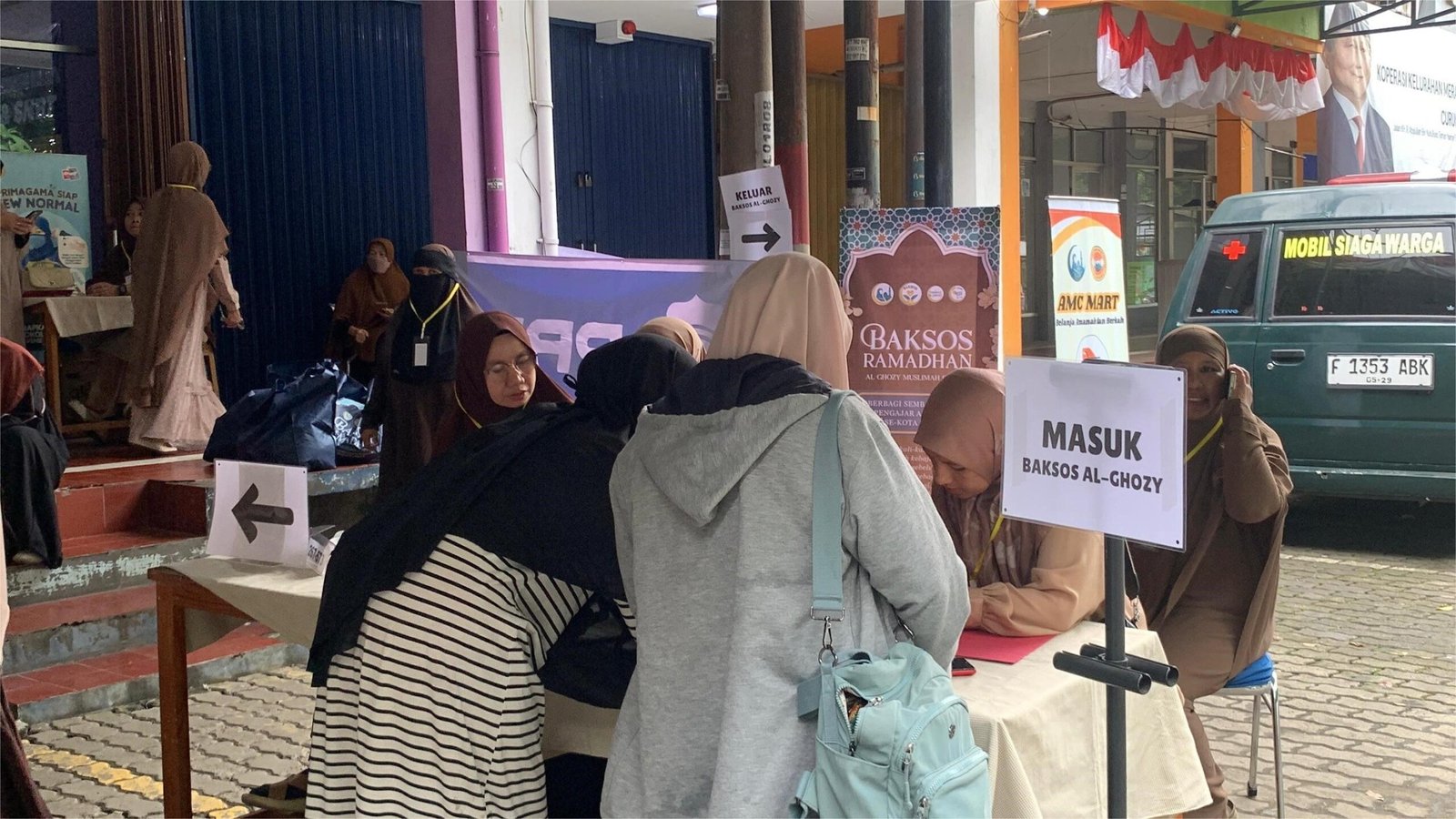 Suasana saat Yayasan Al-Ghozy Muslimah Center (AMC) Bogor, Jawa Barat, pada Sabtu (21/2/2025) menyalurkan total sebanyak 1.150 paket sembako untuk "Pejuang Al-Quran" yang terdiri atas guru/pengajar Al-Qur’an, peserta Tahsin Al Ghozy (TAG), marbot masjid, guru Al Quran di pesantren, yang dipusatkan di di Ruko Primagama Sektor VI Taman Yasmin, Kota Bogor. FOTO: HO-Yayasan AMC
