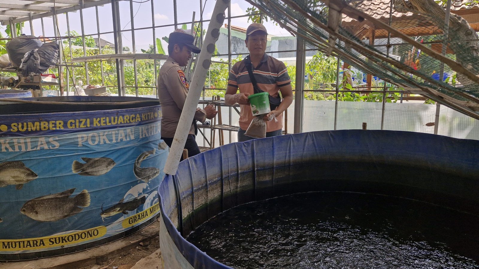 Bhabinkamtibmas Desa Kebonagung Polsek Sukodono, Cek Perkembangan Budidaya Ikan Lele Warga di Lahan Kosong