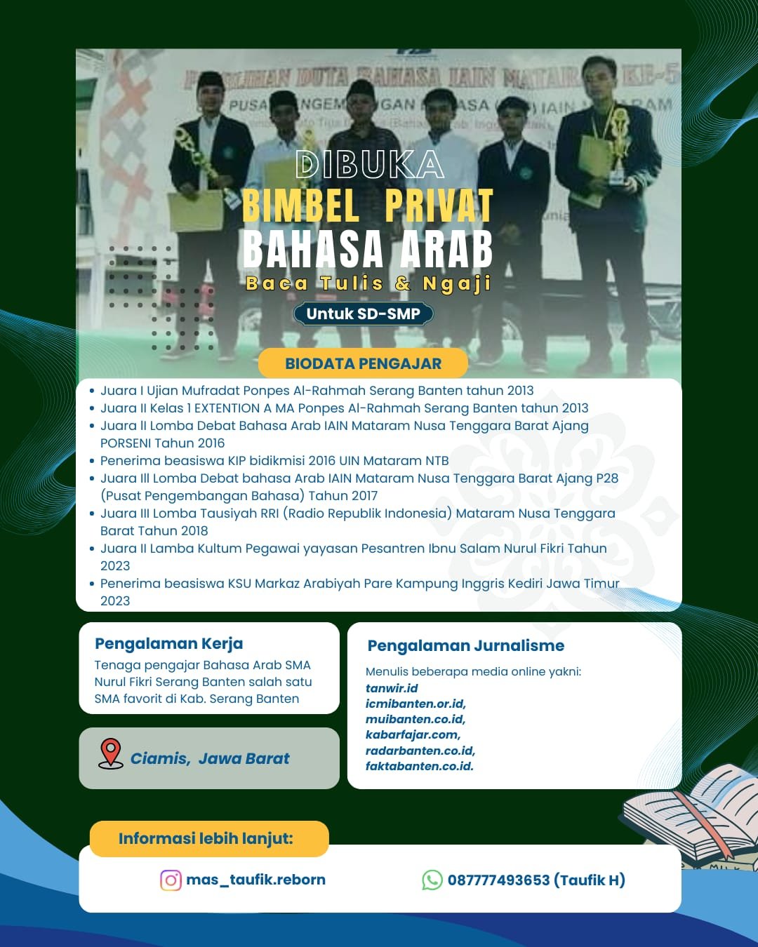 Bagi yang berminat mengikuti program ini, informasi lebih lanjut mengenai pendaftaran dan biaya bisa diperoleh melalui WhatsApp atau Instagram yang tertera pada pamflet resmi.(PR/04)