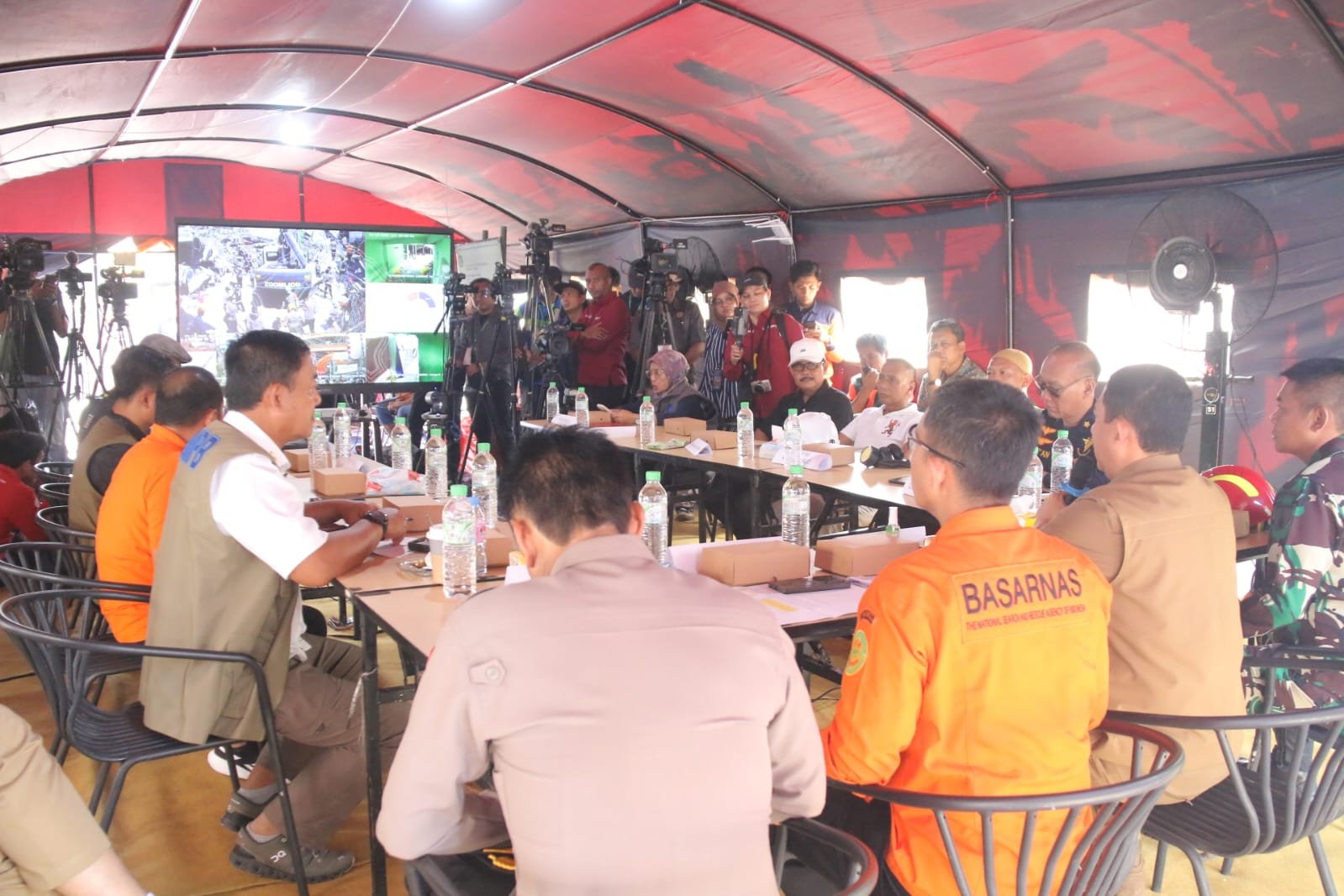 SIDOARJO- JATIM | SUDUTPANDANG.ID – Hari ini Sabtu 04/10/2025 di Posko Tanggap Darurat, Kepala BNBP Letjend TNI Suhariyanto serta Deputi III Penanganan Darurat BNPB Mayjend TNI Budi Irawan laksamana pertama Bramantyo, Kapolres Sidoarjo, Dandim 0816 Sidoarjo, Asisten Adm Perekonomian Pembangunan Mahmud, serta beberapa unsur terkait melaksanakan jumpa pers dalam Rapat Koordinasi rutin harian untuk mengevaluasi pada setiap kekurangan dan kelemahan operasi penyelamatan dan evakuasi dan penanganan secara sekeluruhan terjadinya bencana yang menimpa Pondok Pesantren Al Khoziny di Sidoarjo.