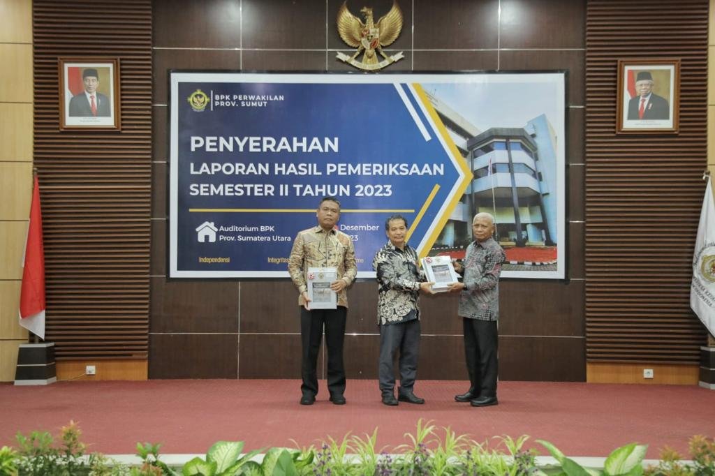 ASAHAN, SUDUTPANDANG.ID –Badan Pemeriksa Keuangan (BPK) Perwakilan Provsu menyerahkan Laporan Hasil Pemeriksaan (LHP) Semester II kepada Pemerintah Kabupaten Asahan di Auditorium BPK Perwakilan Provsu, Kamis (28/12/2023).