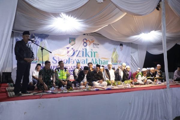 ASAHAN, SUDUTPANDANG.ID – Bupati Asahan, Sumatera Utara, H Surya, B.Sc bersama forkompimda menghadiri dzikir dan shalawat akbar yang berlangsung di halaman Stadion Mutiara Kisaran pada malam akhir tahun 2022, Sabtu (31/12/2022) malam.