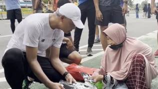 Usai menyapa Siti, Ganjar kembali berlari mengelilingi kawasan CFD Sudirman-Thamrin.