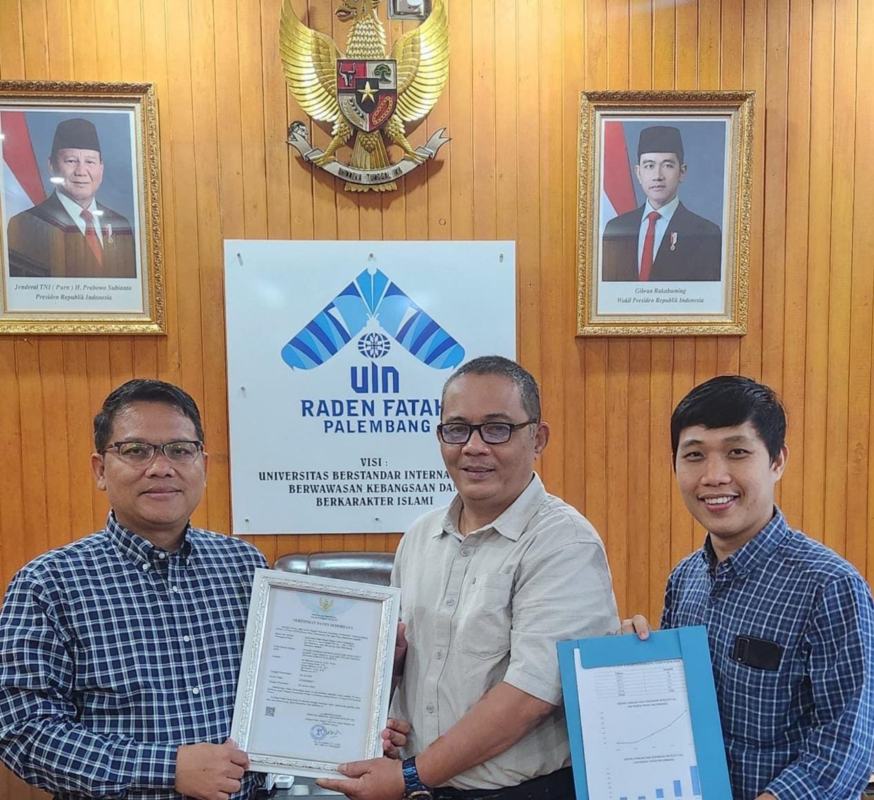 Sertifikat paten tersebut diserahkan secara resmi oleh Sentra Hak Kekayaan Intelektual (HKI) Lembaga Penelitian dan Pengabdian kepada Masyarakat (LP2M) kepada Rektor UIN Raden Fatah, Prof. Dr. Muhammad Adil, M.A., pada Kamis (19/6/2025).