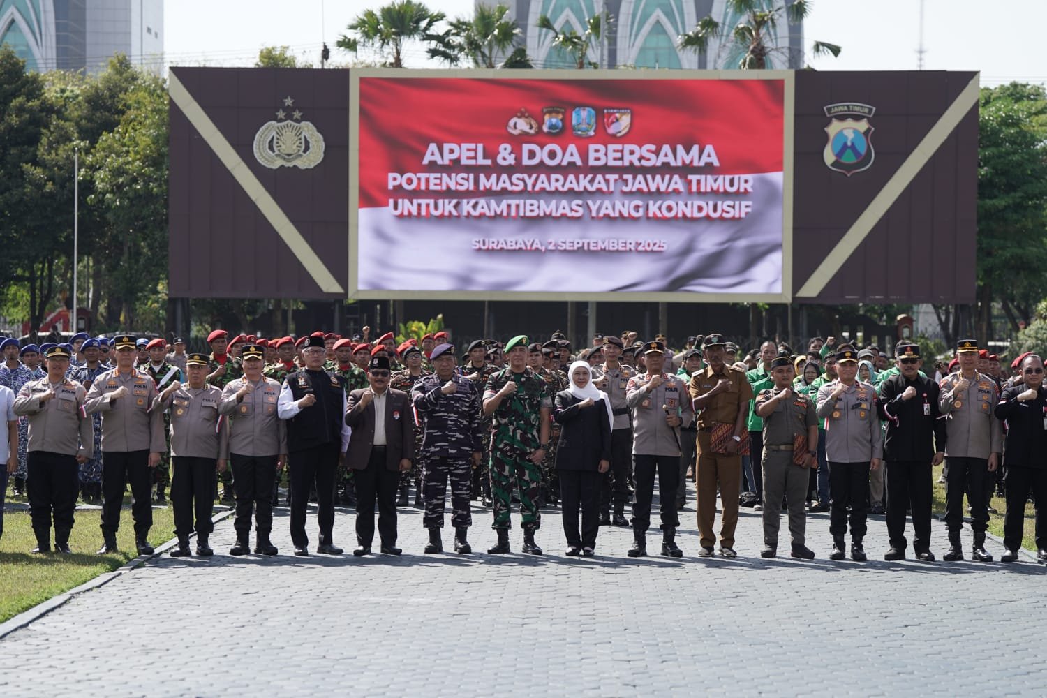 Apel dan doa bersama tersebut digelar, bertujuan untuk mewujudkan Provinsi Jatim yang aman dan kondusif.