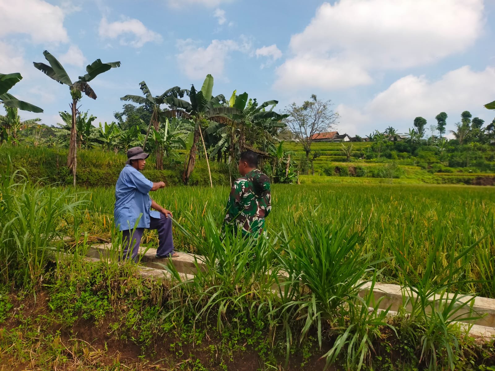 Dampingi Perawatan Tanaman Padi, Koramil Kuripan Dukung Gerakan Antisipasi Darurat Pangan Nasional