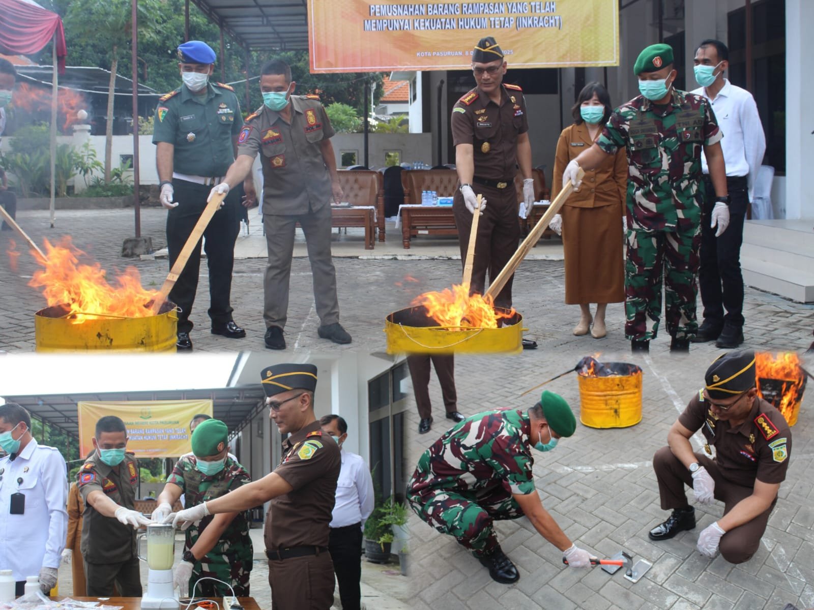 Dandim 0819 Hadiri Pemusnahan Barang Bukti Inkracht di Kejari Kota Pasuruan