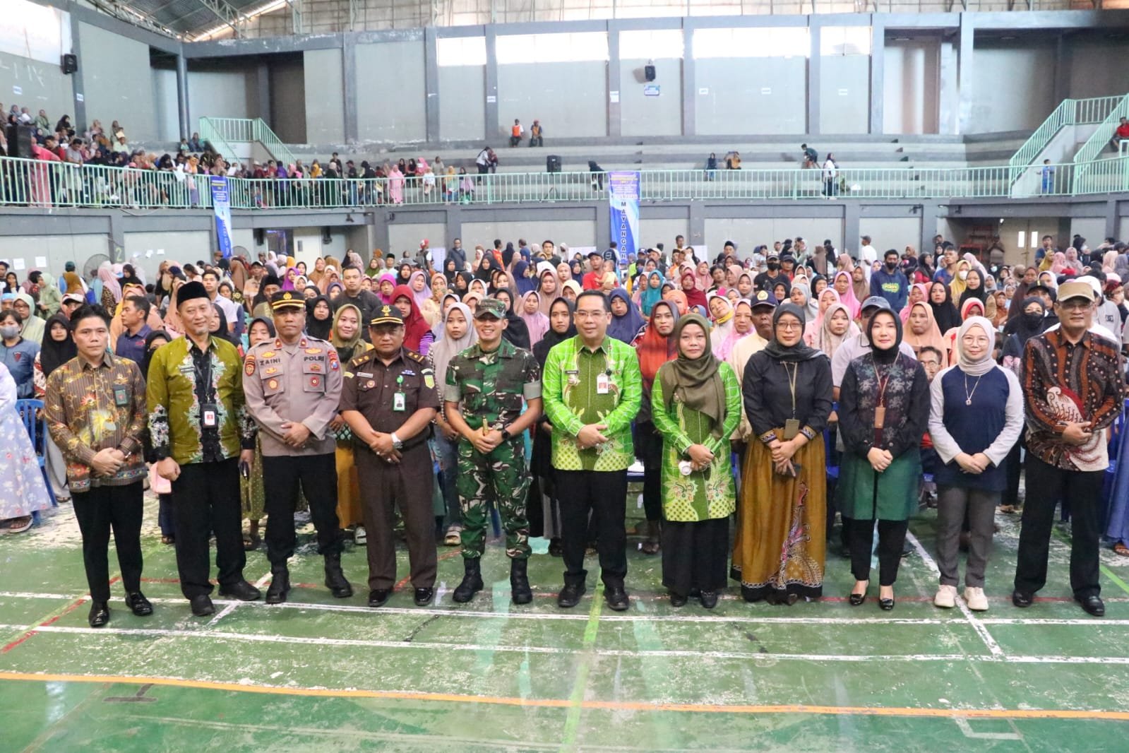 PROBOLINGGO – JATIM | SUDUTPANDANG.ID – Dandim 0820/Probolinggo Letkol Inf Ribut Yodo Apriantono bersama sejumlah pihak menghadiri pelaksanaan penyaluran bantuan langsung tunai (BLT) dana bagi hasil cukai hasil tembakau (DBHCHT) kepada buruh pabrik, buruh tani dan masyarakat lainnya di Gor Mastrib, Kota Probolinggo, Jumat (13/3).