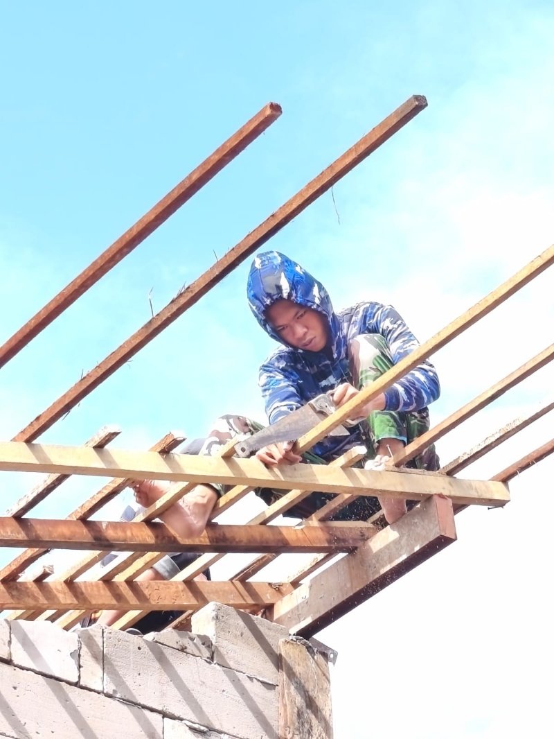 Pada tahap pengerjaan kali ini, personel Satgas TMMD melaksanakan pemasangan kerangka atap berbahan kayu. Pemasangan rangka dilakukan secara teliti dan gotong royong guna memastikan konstruksi atap kuat, kokoh, serta aman untuk jangka panjang.