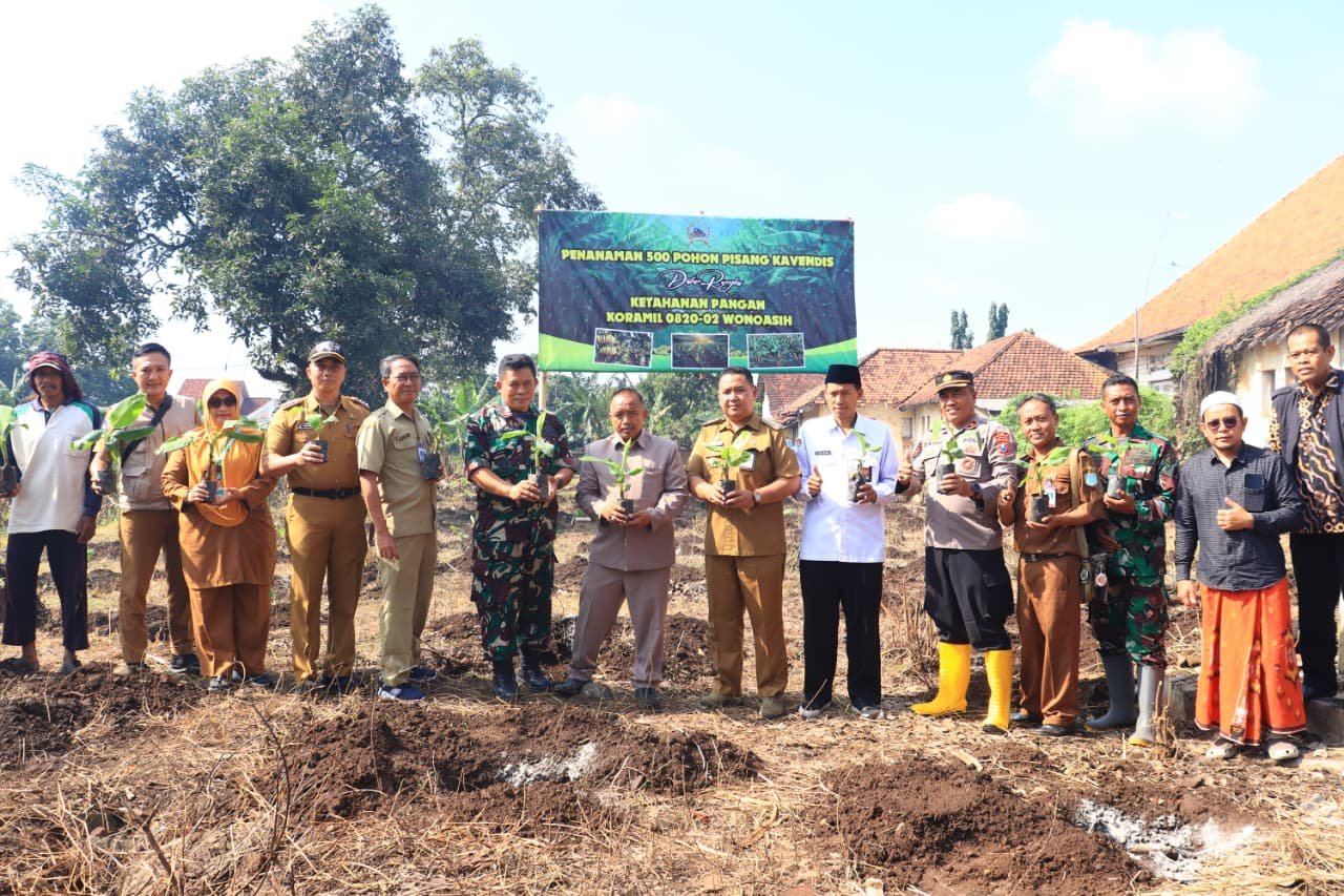 Danramil 0820-02/Wonoasih Kapten Inf M.Yahudin menyampaikan kegiatan penanaman Pisang Cavendish menjadi simbol komitmen dalam mendukung kemandirian pangan serta menunjukkan bahwa pertahanan tidak hanya dijaga dengan senjata tetapi juga melalui ketahanan di sektor pertanian dan pangan.