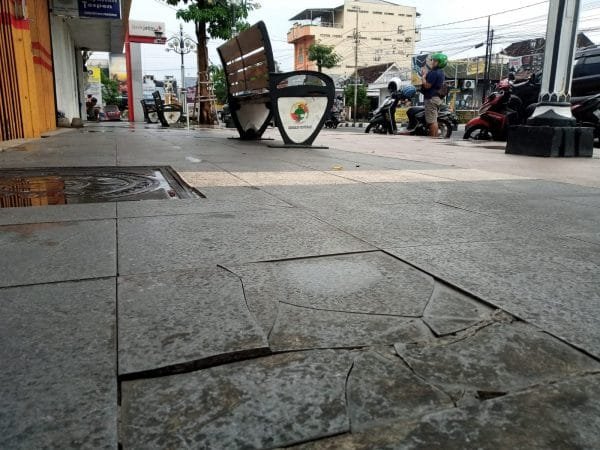 Berdasarkan pantauan, terdapat lantai trotoar yang pecah hingga warna cat kursi di sepanjang pedestrian yang mulai memudar.
