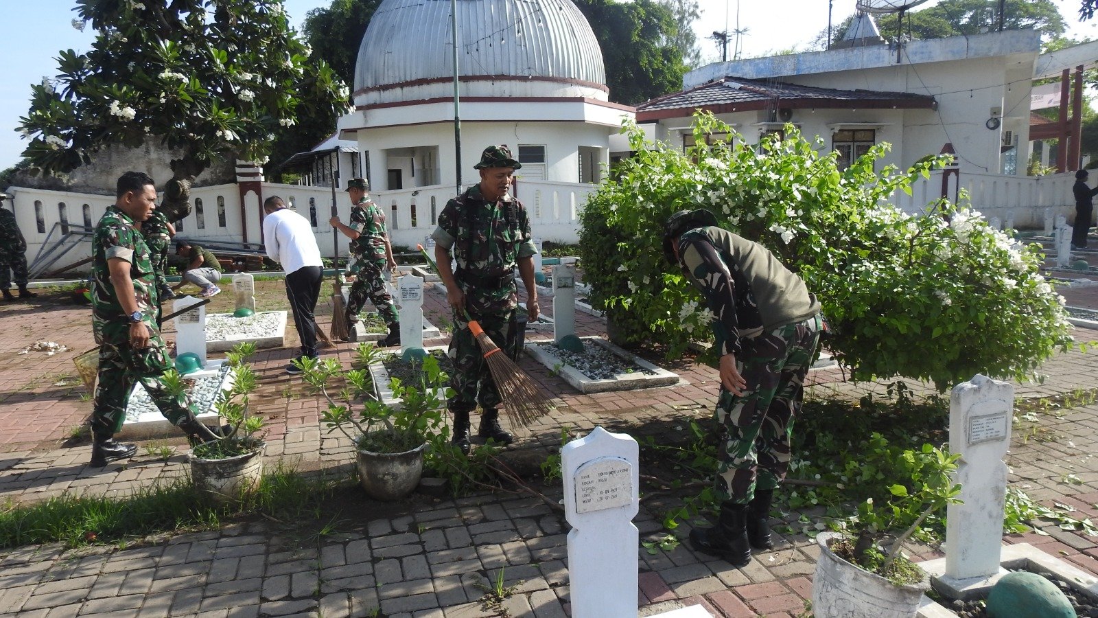 Dalam kegiatan tersebut, para prajurit bersama masyarakat membersihkan area makam serta merapikan tanaman. Suasana kebersamaan dan gotong royong terasa kental di tengah teriknya matahari pagi. Warga yang turut hadir pun tampak antusias membantu, menunjukkan bahwa semangat kepedulian sosial masih hidup di tengah masyarakat.