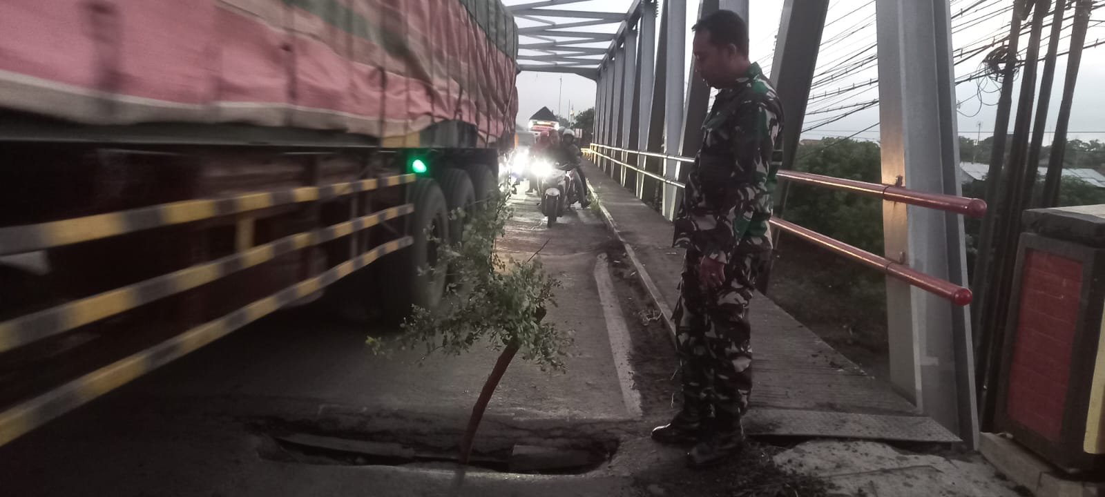 Jembatan Pajarakan Rusak Babinsa 0820-Probolinggo Bantu Arus Lalu Lintas Utama Probolinggo Yang Terganggu