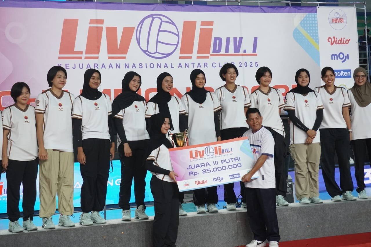 Teruslah menjadi Tim Bola Voli Putri terbaik dari Mabes TNI, kami bangga atas keberhasilan dalam meraih juara Tiga Livoli Divisi 1 Tahun 2025 dengan pencapaian yang membanggakan