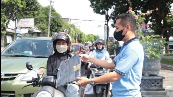 Peringatan itu diwujudkan melalui kampanye dengan membagikan kaos kepada masyarakat tentang anti penyalahgunaan narkoba di seputaran Kota Magetan, Jawa Timur, Selasa (28/6/2022).