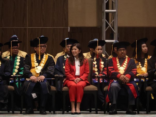 Kegiatan wisuda turut dihadiri Menteri Komunikasi dan Digital Indonesia, Meutya Hafid, yang menyampaikan orasi ilmiah berjudul “Menyiapkan Generasi Siap AI: Peluang, Etika, dan Dunia Kerja.”