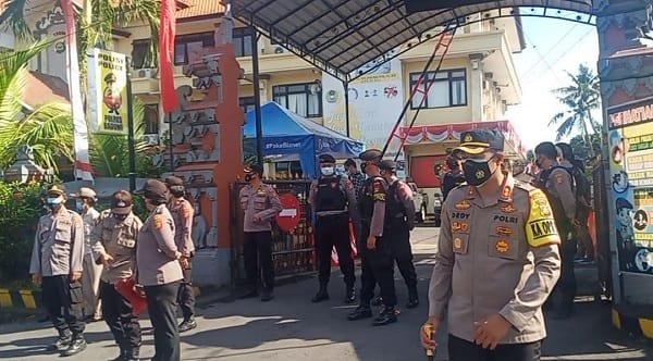 BADUNG, SUDUTPANDANG.ID – Kapolres Badung AKBP Leo Dedy Defretes memimpin langsung pelaksanaan latihan Sistem Pengamanan Mako Polres (Sispam Mako), yang dilaksanakan di seputaran Mapolres, mulai dari depan Mako hingga Gedung Satlatas Polres Badung, Kamis (26/8/2021) pagi pukul 09.00 Wita.