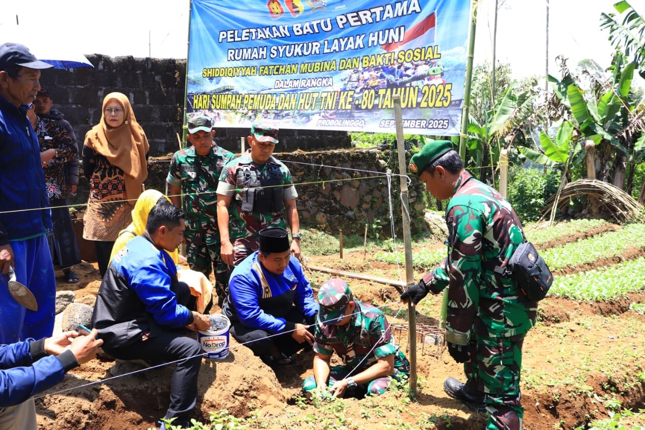 PROBOLINGGO – JATIM | SUDUTPANDANG.ID –Kasdim 0820/Probolinggo Mayor Inf Herawadi Karnawan menghadiri kegiatan peletakan batu pertama program rumah tidak layak huni (Rutilahu) di Dusun Kali Cilik, Desa Sumber, Kecamatan Sumber, Kabupaten Probolinggo.