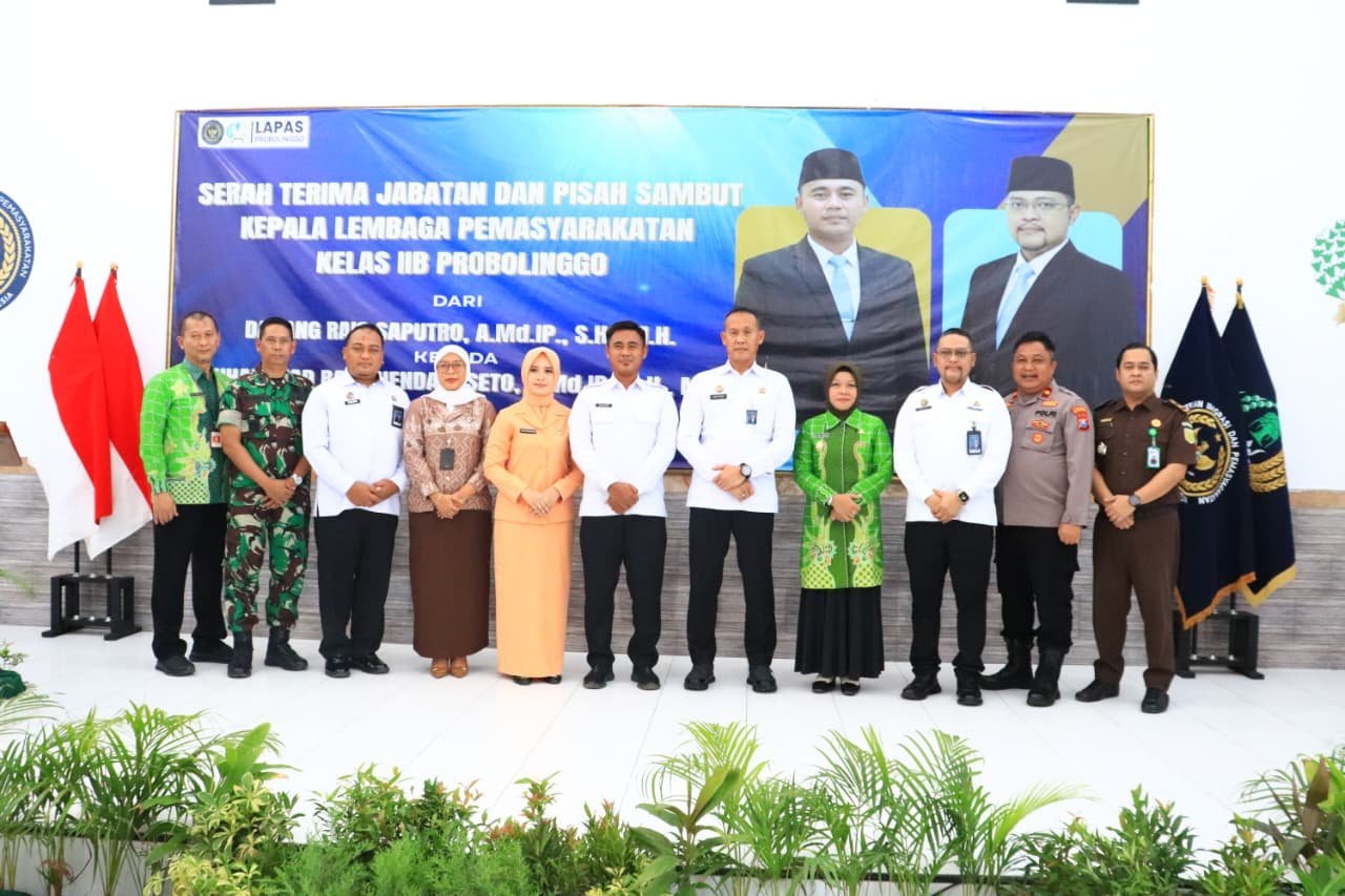 PROBOLINGGO – JATIM | SUDUTPANDANG.ID -Bersama dengan sejumlah pihak Kasdim 0820/Probolinggo Mayor Inf Herawadi Karnawan menghadiri kegiatan serah terima jabatan dan pisah sambut Kalapas II B Probolinggo dari Dadang Rais Saputro kepada Muhammad Bayu Hendaruseto, jumat (10/10).