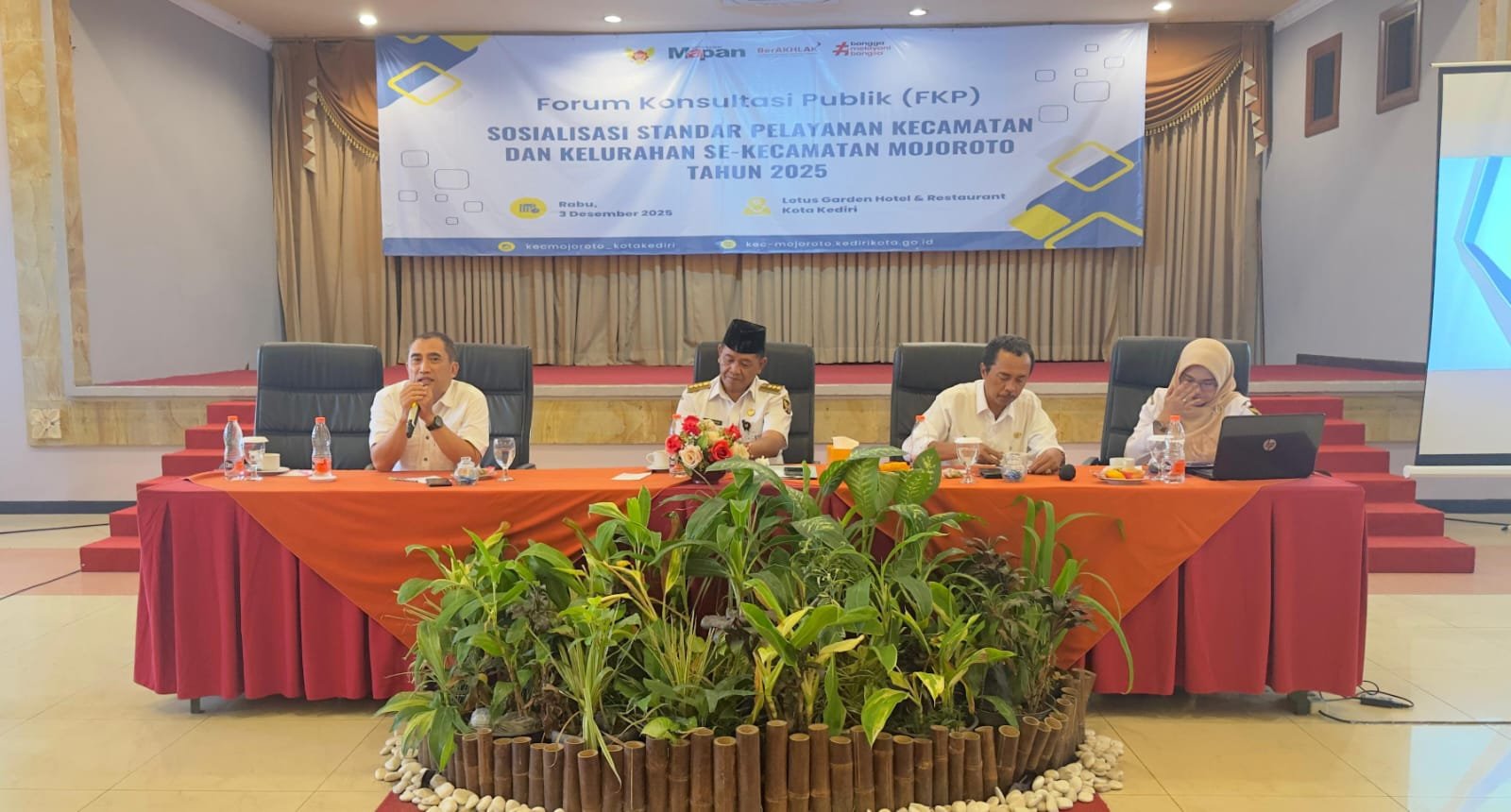 KEDIRI, SUDUTPANDANG.ID – Upaya meningkatkan kualitas pelayanan publik kembali ditegaskan Pemerintah Kecamatan Mojoroto melalui penyelenggaraan Forum Konsultasi Publik (FKP) yang berlangsung di Ballroom Hotel Lotus, Jalan Jaksa Agung Suprapto, Rabu (3/12/2025).
