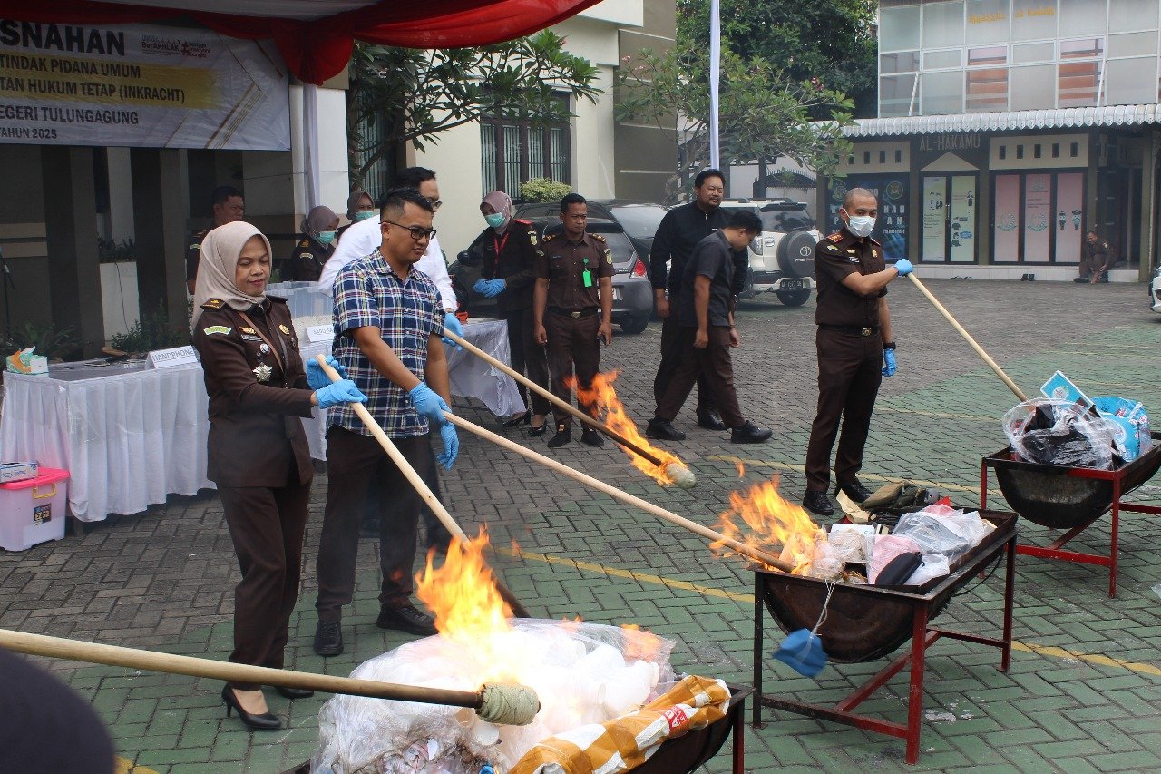 TULUNGAGUNG, SUDUTPANDANG.ID – Kejaksaan Negeri (Kejari) Tulungagung kembali menyelesaikan kewajiban sebagai penegakan hukum melalui pemusnahan barang bukti (BB) dari berbagai perkara tindak pidana umum yang telah memperoleh kekuatan hukum tetap. Kegiatan ini digelar sebagai tindak lanjut pelaksanaan putusan pengadilan sekaligus upaya menjaga keamanan terhadap barang bukti yang berpotensi disalahgunakan.