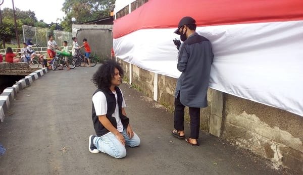Selain pembuatan film “Pusaka dari Timur”, warga RT 09 juga memasang bendera merah putih sepanjang 50 meter untuk memperingati HUT ke-75 RI di lingkungannya.