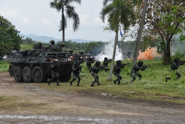 Suara ledakan dan rentetan senjata mengawali simulasi pertempuran yang dilaksanakan oleh pasukan gabungan TNI AD dan SAF, upaya melumpuhkan dan menghancurkan musuh yang berada di gedung, serta merebut sasaran, diwarnai dengan pertempuran yang sengit oleh kedua belah pihak, baik dari pasukan gabungan TNI AD dan SAF dengan pasukan musuh yang berada di sekitar gedung-gedung perkotaan.