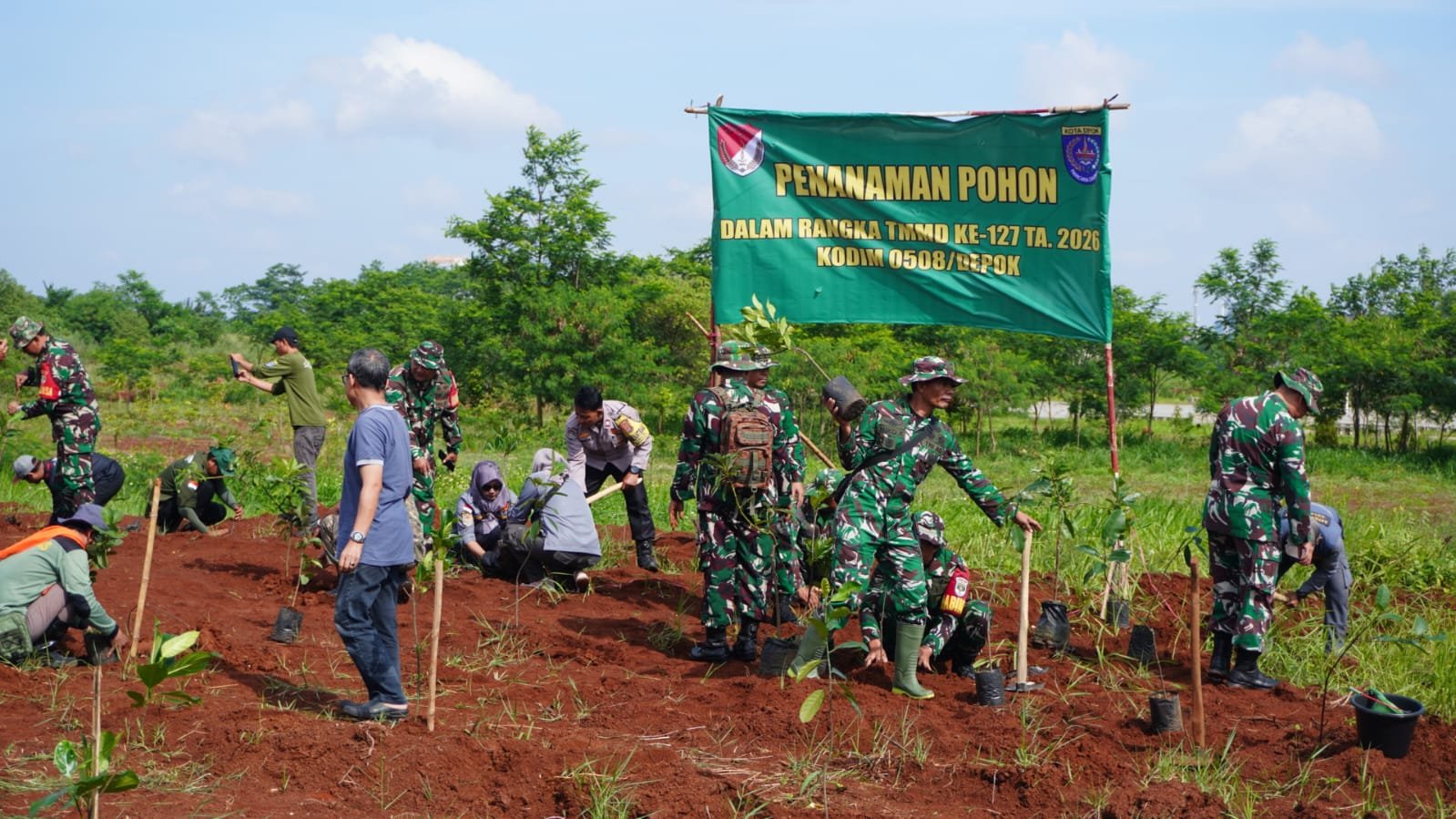 Kegiatan penghijauan tersebut dipimpin langsung oleh Wadansatgas TMMD Kodim 0508/Depok, Letkol Inf Rendra Satrio Wibowo. Aksi ini menjadi salah satu bentuk kepedulian TNI terhadap pelestarian lingkungan sekaligus mempererat kemanunggalan antara TNI dan masyarakat di wilayah Kota Depok.