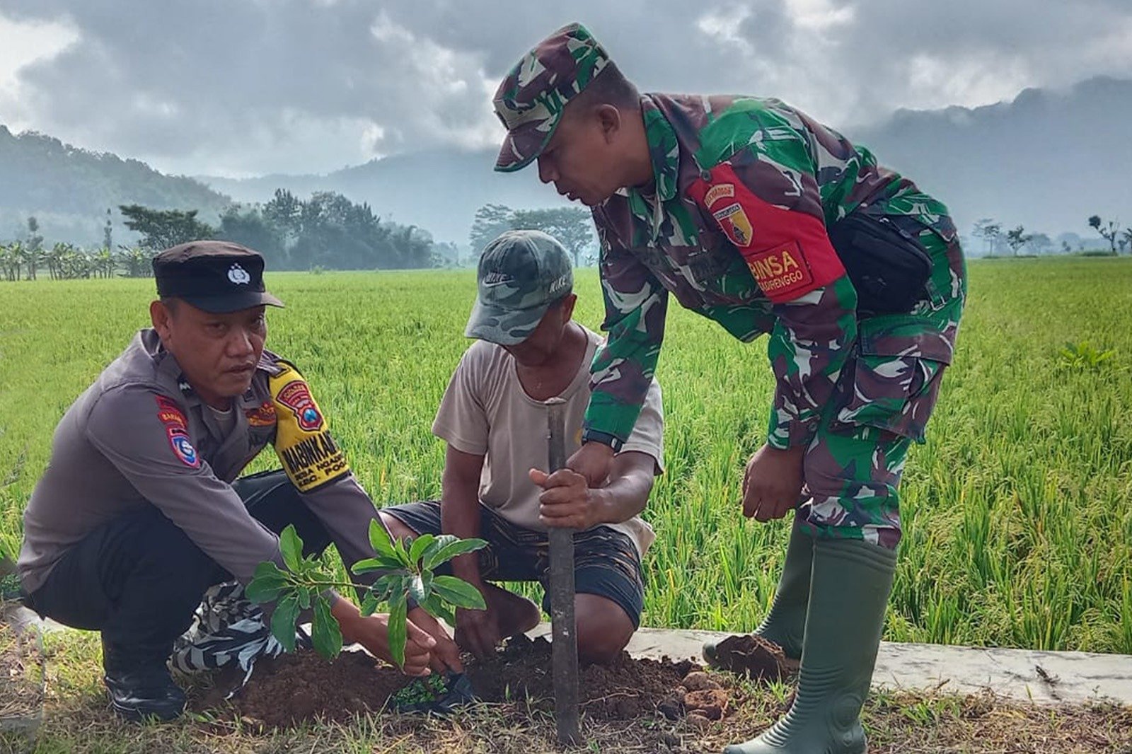 TRENGGALEK – JATIM | SUDUTPANDANG.ID – Sinergitas antara TNI-Polri bersama pemerintah daerah kembali ditunjukkan melalui aksi nyata Gerakan Penanaman Pohon di sepanjang jalan Dusun Ceme, Desa Ngadirenggo, Kecamatan Pogalan, Kabupaten Trenggalek, Minggu (19/4/2026). Kegiatan ini melibatkan Babinsa, Bhabinkamtibmas, pemerintah kecamatan dan desa, relawan, serta masyarakat setempat.