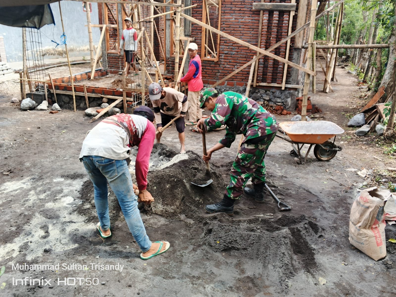 Koramil 0820/10 Kuripan kembali melaksanakan komunikasi sosial (Komsos) dengan ikut ambil bagian dalam kegiatan kerja bakti pembangunan rumah (Foto Istimewa)