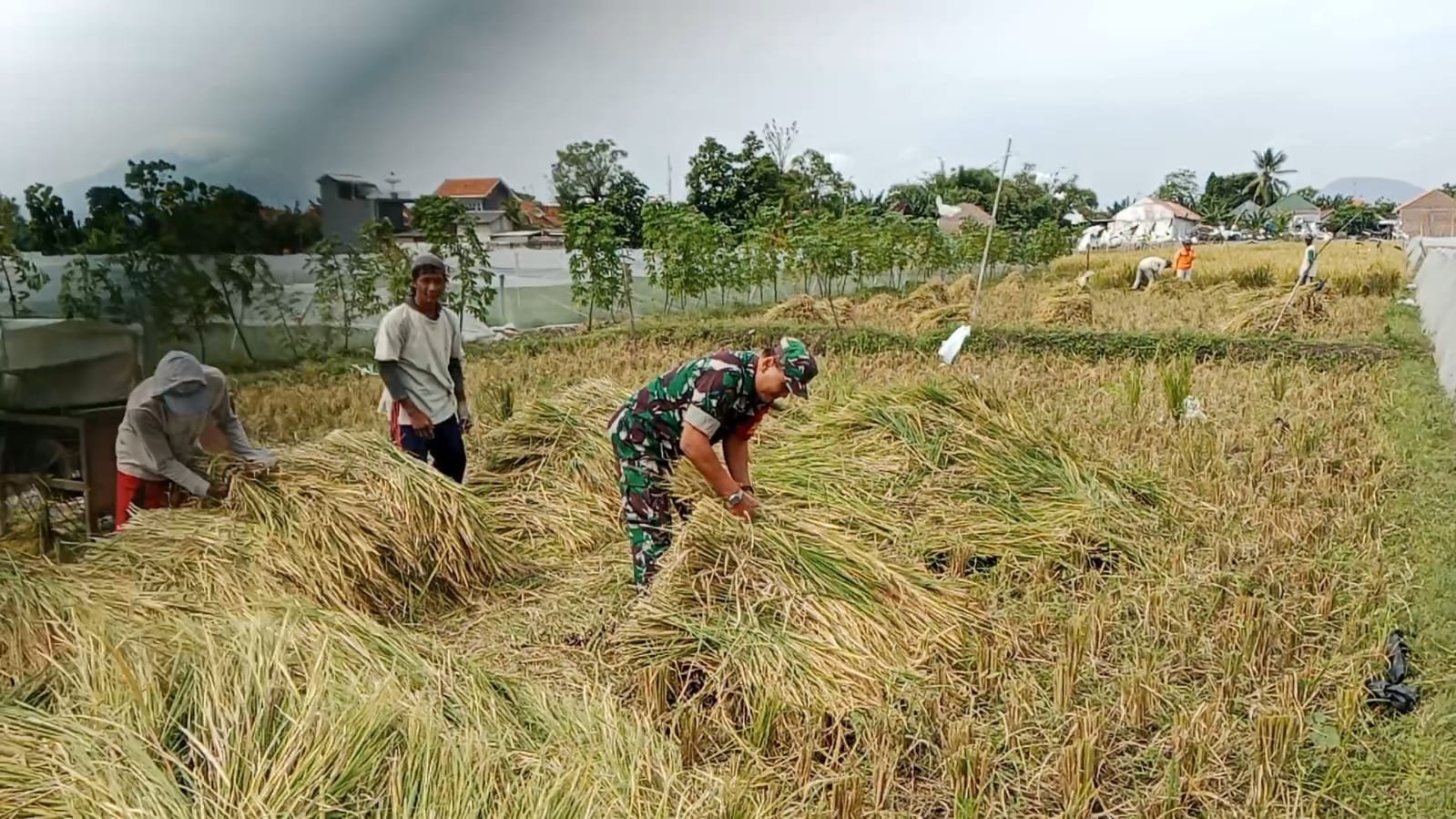 Bertempat di lahan pertanian milik salah satu warga di Desa Tigasan Wetan, Kecamatan Leces, Kabupaten Probolinggo. Koramil 0820/03 Leces melaksanakan komunikasi sosial dan patroli dengan melakukan pendampingan dalam proses panen padi.