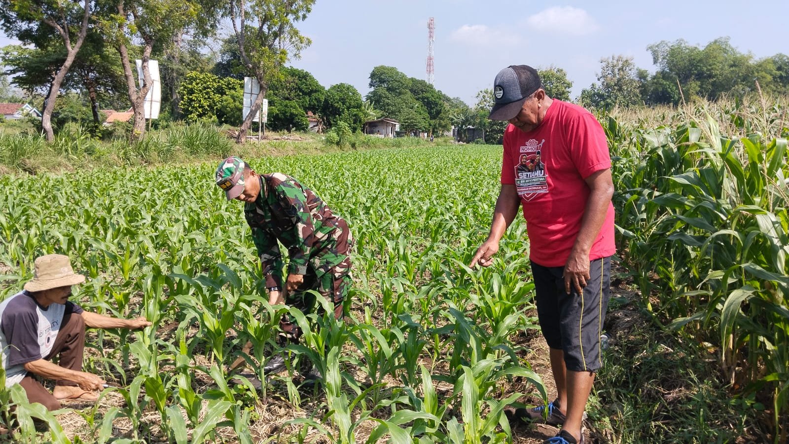 Anggota Koramil 0820/06 Sumberasih Serka Akhmad Prasetia saat Mendampingi Petani di Wilayah Binaan