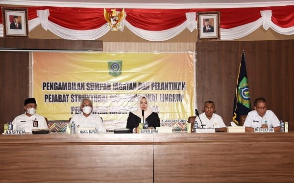 Demikian disampaikan Bupati Bima saat pengambilan sumpah jabatan dan pelantikan 274 pejabat struktural dan fungsional di lingkungan Pemerintah Kabupaten (Pemkab) Bima Rabu (12/1/2022).