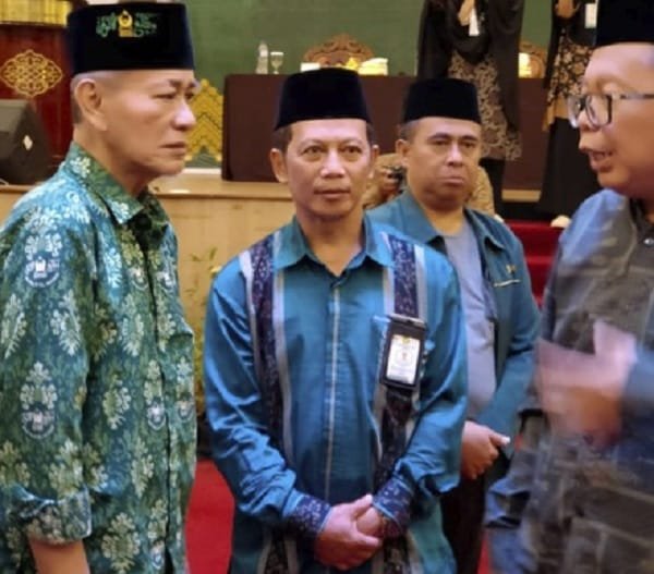 Prof. Dr. Ir. Ari Sandhyavitri, M.Sc (tengah) bersama Ketua Umum Pengurus Besar Mathla'ul Anwar (PBMA) KH Embay Mulya Syarief (batik hijau, kiri) dan Anggota DPR RI Arsul Sani (kanan) di Pekanbaru, Sabtu (29/10/2022)/Foto:istimewa