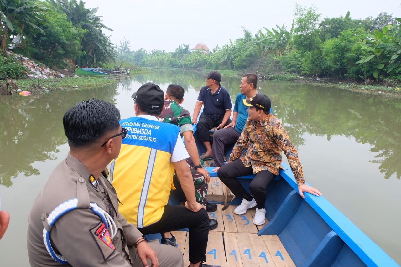 SIDOARJO – JATIM | SUDUTPANDANG.ID – Bupati Sidoarjo H. Subandi, SH,.Kn bersama Kepala Dinas PU Binamarga serta beberapa pejabat di Sidoarjo menyusuri sungai Mbah Gepuk, Jum’at (20/06/2025). Kegiatan ini dilakukan dalam upaya normalisasi sungai untuk menekan resiko terjadinya banjir, utamanya kawasan Tanggulangin dan Candi yang kerap menjadi langganan banjir setiap kali musim penghujan.