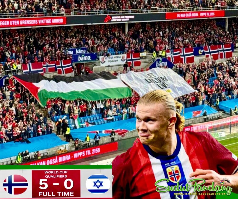 Namun, di balik pesta gol Norwegia, suasana stadion dipenuhi aksi solidaritas untuk Palestina. Ribuan pendukung tuan rumah membentangkan bendera Palestina berukuran besar di tribune utama sebagai bentuk protes terhadap agresi militer Israel di Jalur Gaza.