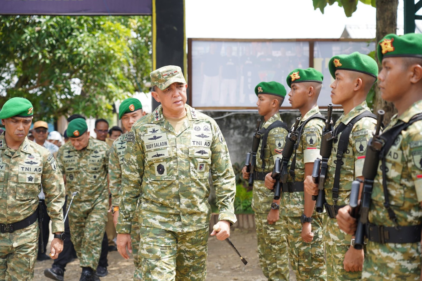 Kegiatan berlangsung di Mayonif TP 887/KJM, Desa Slaharwotan, dengan dihadiri sekitar 400 personel. Kunjungan ini bertujuan memastikan kesiapan operasional satuan serta mengevaluasi pembangunan markas yang menjadi bagian dari penguatan sistem pertahanan wilayah Kodam V/Brawijaya secara menyeluruh.