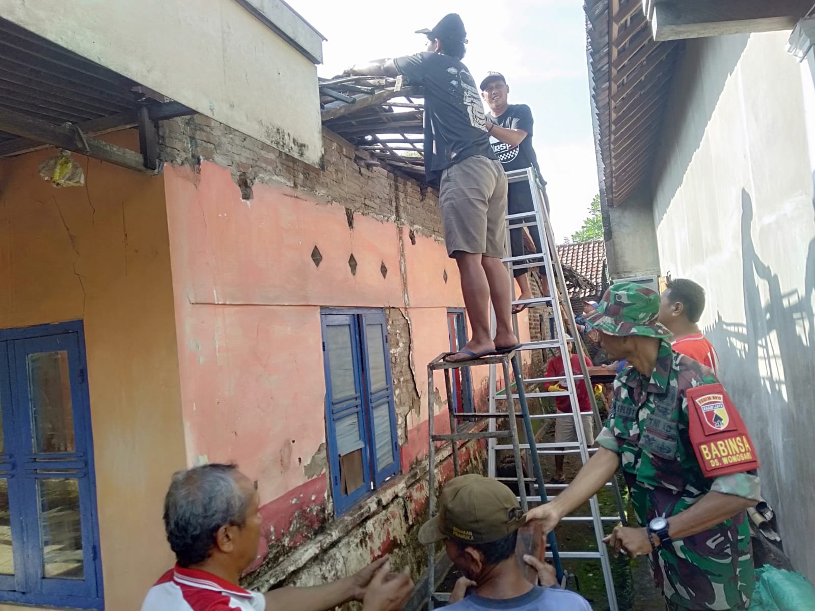 Kegiatan kerja bakti ini dilaksanakan dengan penuh kebersamaan dan kepedulian. Warga sekitar tanpa ragu ikut turun tangan, membawa peralatan seadanya untuk membantu proses pembersihan puing dan memperbaiki bagian yang masih bisa diselamatkan. Dukungan dari Babinsa dan perangkat desa menjadi penyemangat tersendiri bagi masyarakat yang terdampak musibah tersebut.