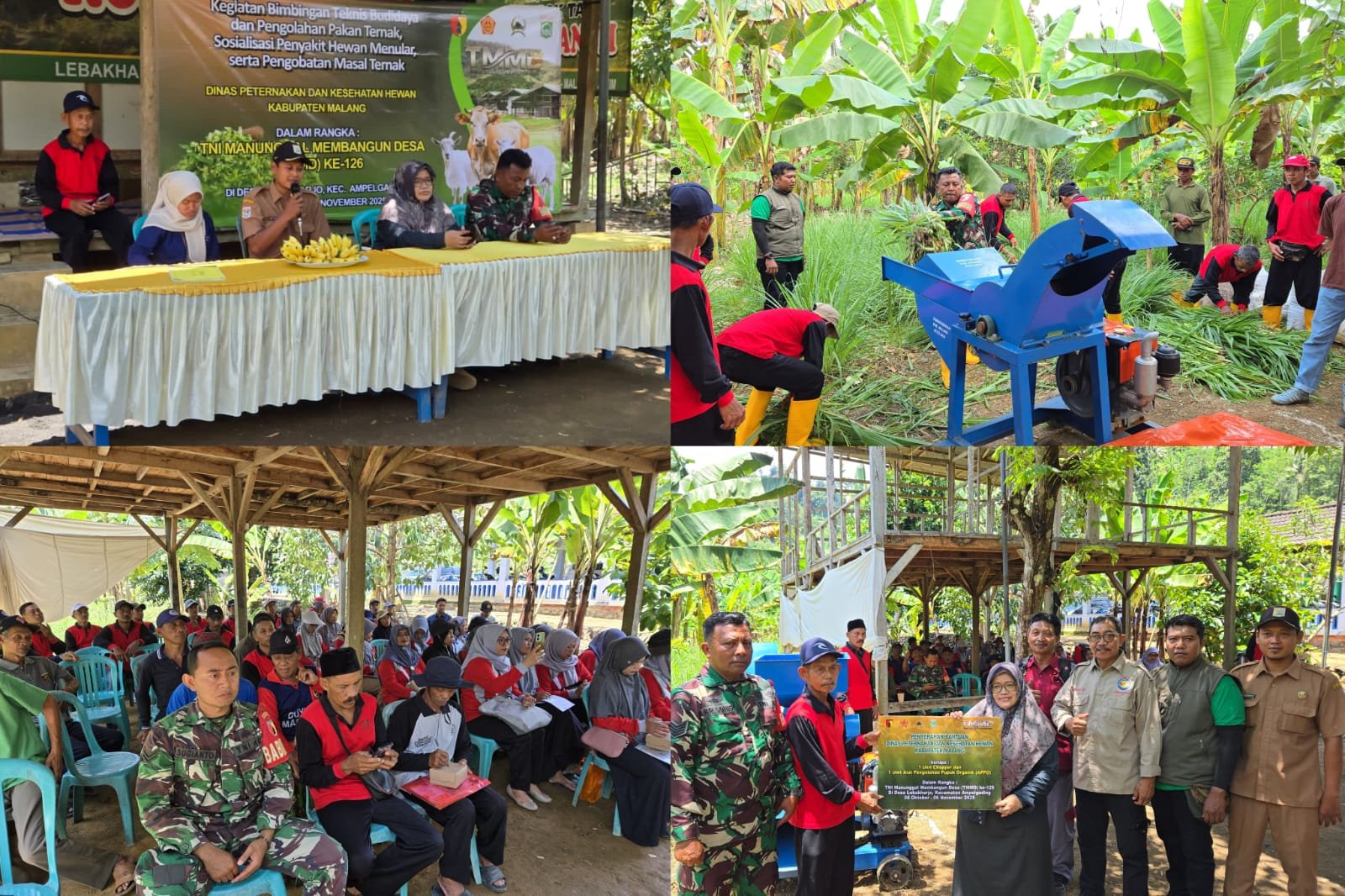 MALANG – JATIM | SUDUTPANDANG.ID –Program TNI Manunggal Membangun Desa (TMMD) ke-126 yang dilaksanakan oleh Kodim 0818/Malang–Batu terus menunjukkan kontribusi nyata bagi masyarakat, tidak hanya dalam pembangunan infrastruktur, tetapi juga dalam pemberdayaan ekonomi. Salah satu kegiatan unggulan dalam program ini adalah pelatihan pembuatan pakan ternak melalui fermentasi yang digelar oleh Dinas Peternakan Kabupaten Malang, bertempat di Dusun Krajan II, Desa Lebakharjo, Kecamatan Ampelgading, Kabupaten Malang, Rabu (14/10/2025).
