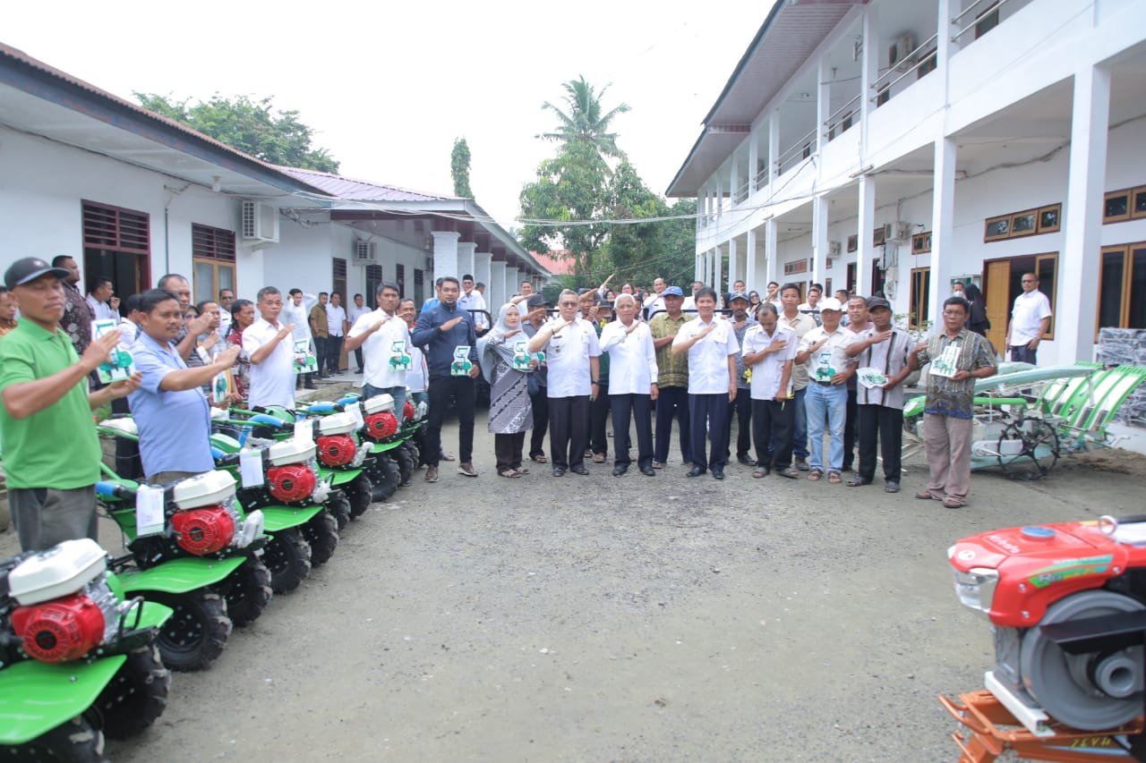 Lanjutnya mengatakan bantuan Alat Mesin Pertanian yang di serahkan kepada 17 Kelompok Tani yang berasal dari beberapa Kecamatan dan alat mesin Pertanian nya berupa Traktor Roda 2 sebanyak 4 unit, Alat angkut roda 3 sebanyak 4 unit, alat tanam padi sebanyak 1 unit, alat penggiling padi sebanyak 1 unit, alat pengolah tanah sebanyak 10 unit.